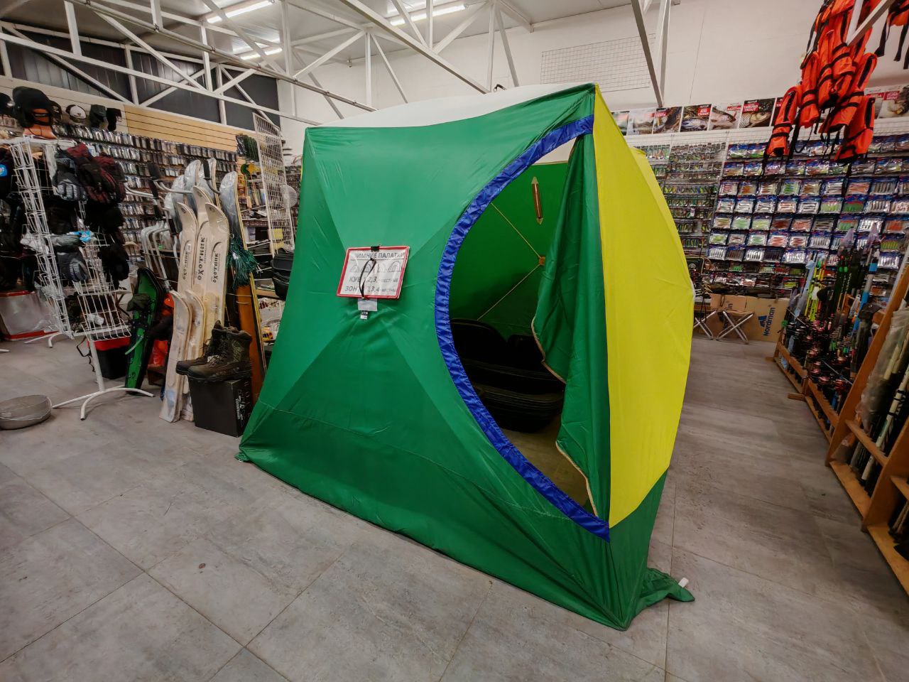 - Просторность: Внутри достаточно места для передвижения и хранения снастей.