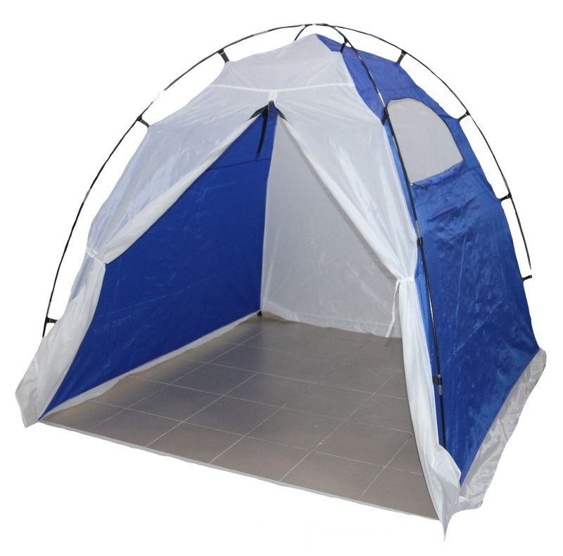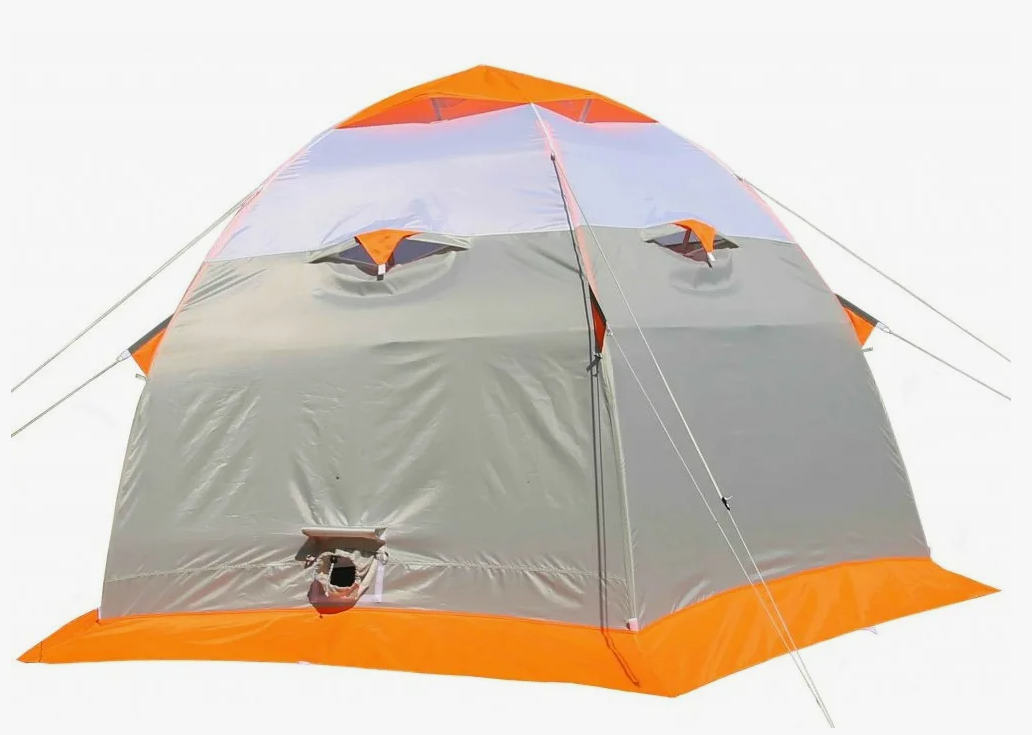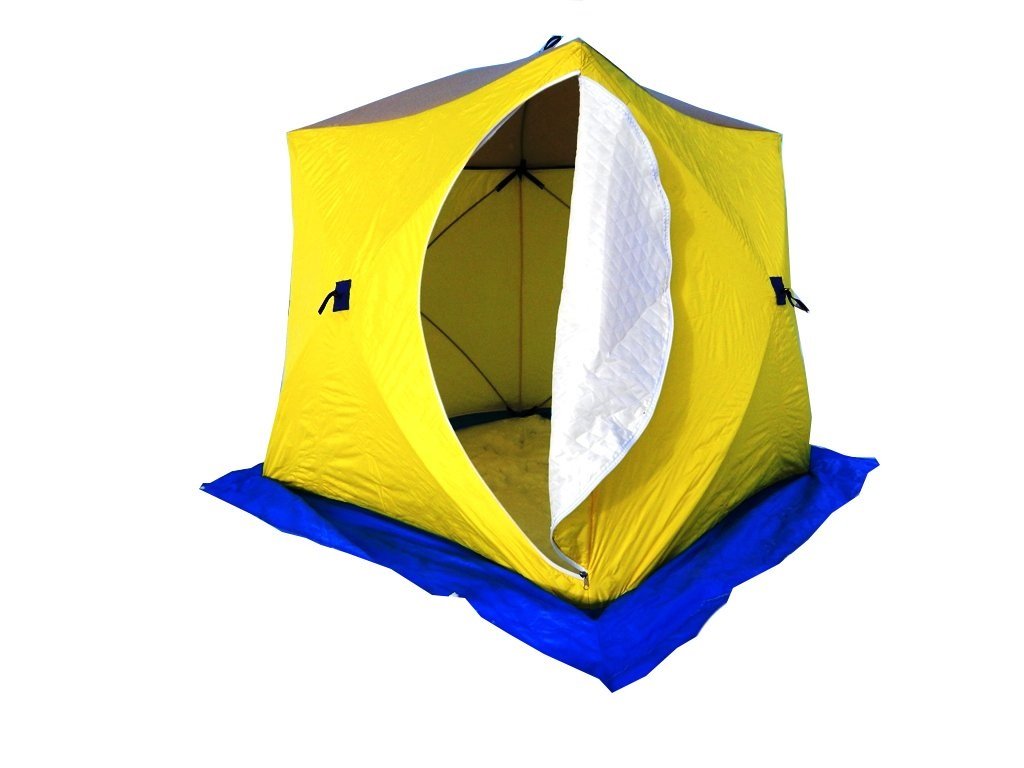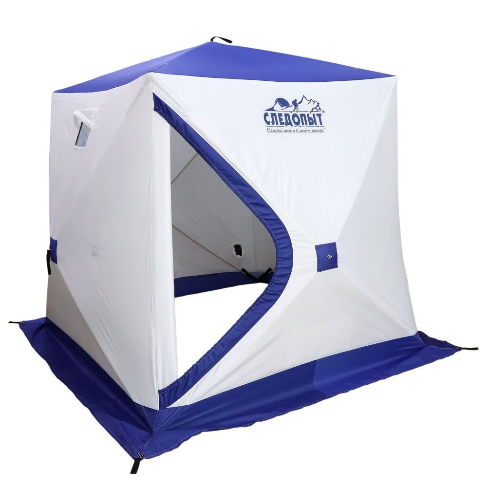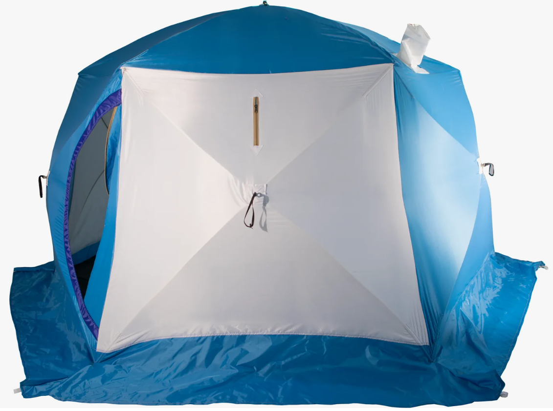 Зимняя палатка в форме куба с двумя входами, выполненная из трехслойного материала.